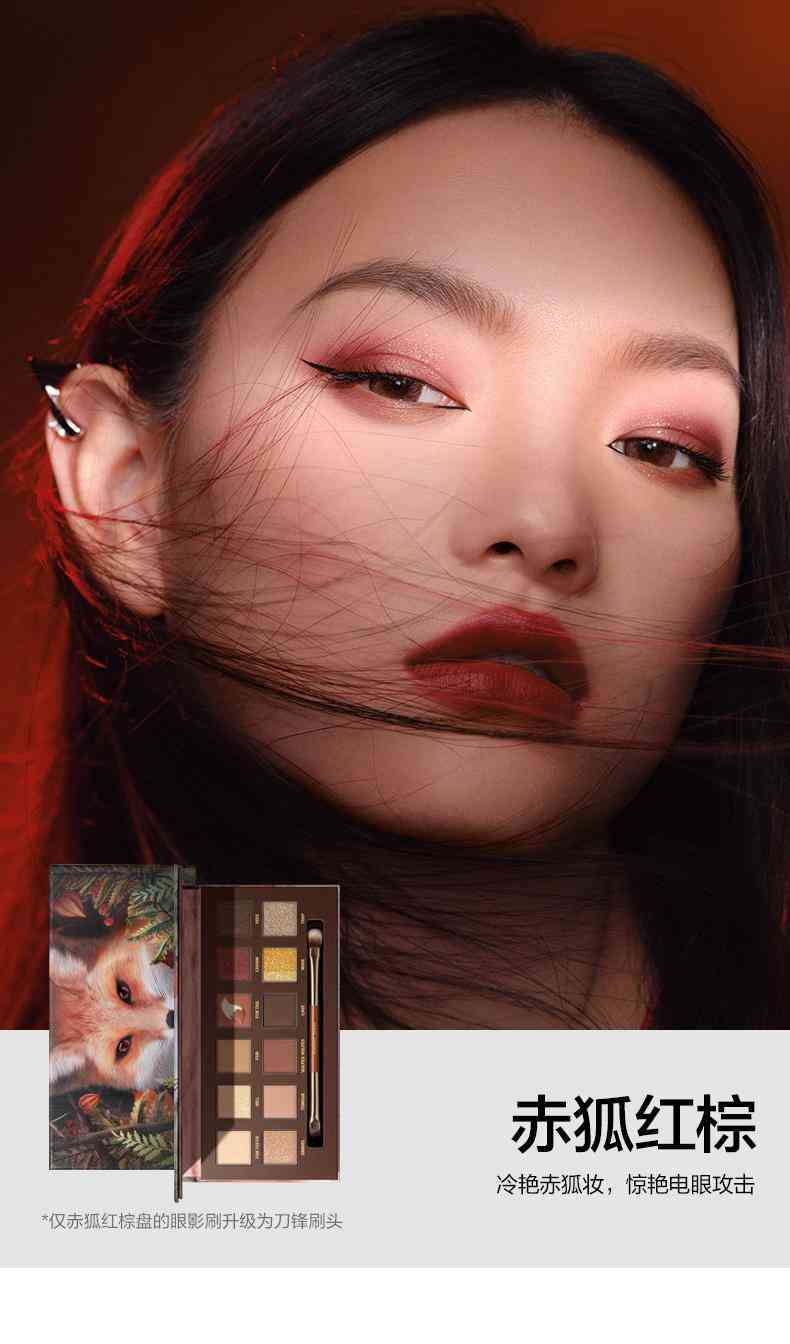 完美日记和Discovery探索频道联名款,以赤狐为灵感,高度还原赤狐及其生活环境的色彩,打造出富有浓郁秋冬氛围的「赤狐」红棕盘,这个颜色非常适合秋冬季节。
