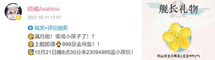 刚出道一个多月的“晓曦Asahino”,在半个月前发布了一条B站动态,宣布将于10月21日举办“满月回”的纪念直播活动。同初生的婴儿一样,这个时间点对于很多名不见经传的小V来说,是个相当重要的粉丝增长节点,而“晓曦Asahino”,也十分隆重地为这次直播准备了一个“狠活”——上舰送黄金。