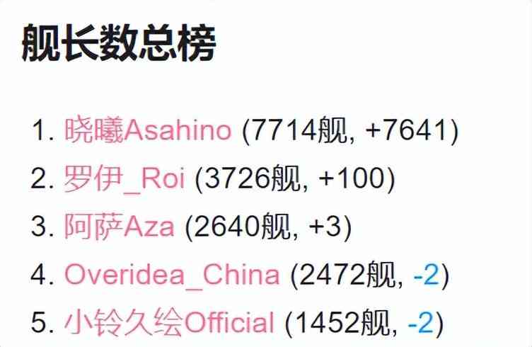 10月21日开播前,“晓曦Asahino”的舰长数是73。