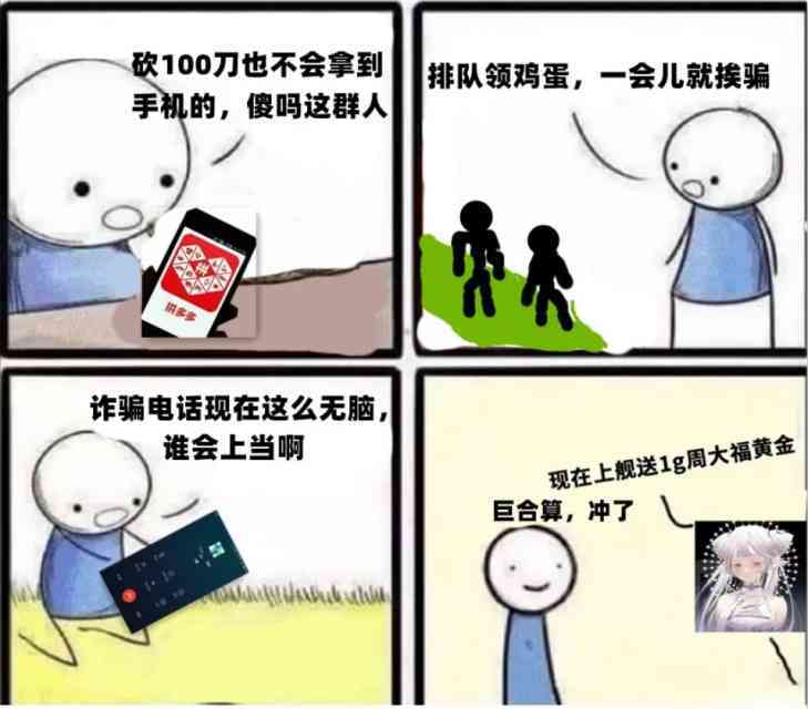 网友们开始生产各种表情包,用来调侃在这次事件中被“黄金”蒙蔽了双眼与理智的舰长们——仅从表面上看,这的确与“买两百保健品即可获得价值两千的玉手镯”之类的诈骗套路,高度重合。