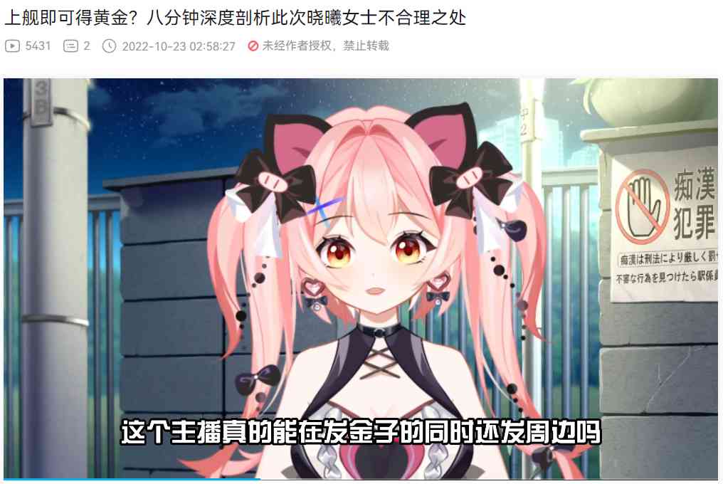而之所以称“晓曦Asahino”的“上舰送黄金”是一个性质相当糟糕的事情,是因为某种程度上,她再一次将这条“虚拟主播恶性竞争之路”推向一个新的极端。