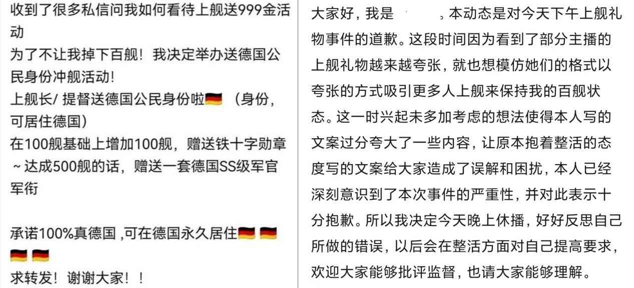 有的人整起了烂活,声称“上舰送德国公民权”,在被网友批评后“光速滑跪”,删掉了原动态并发布道歉声明。
