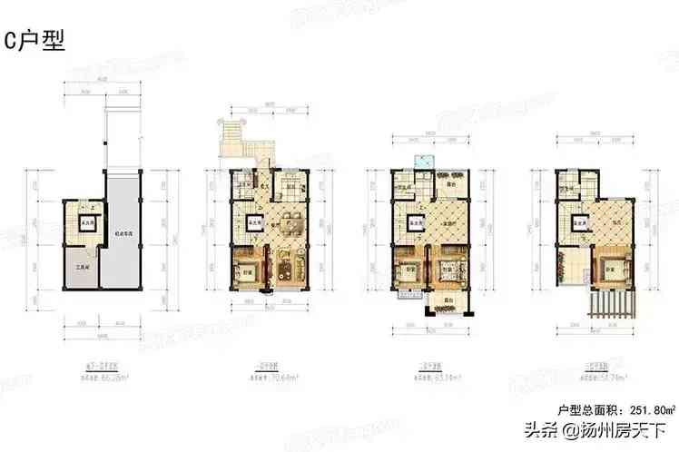 C户型 居室:4室4厅3卫1厨 建筑面积:251.80㎡