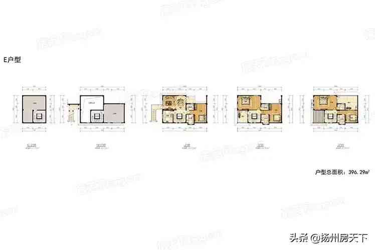 E户型 居室:5室2厅6卫1厨 建筑面积:396.29㎡
