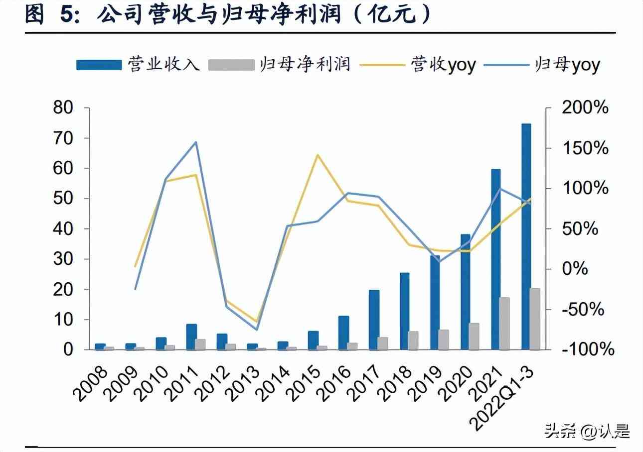 扩张战略复盘:前瞻性布局+逆周期投资助力公司穿越周期,保持高增长。(1)2006- 2011:发展积累期,全球金融危机冲击光伏行业需求,公司凭借稳健经营抵御风险, 并未受到显著影响;(2)2012-2014:发展蛰伏期,光伏行业受美国双反政策影响 需求萎靡,公司在此期间登陆创业板上市,拓展光伏智能加工设备和蓝宝石材料业 务;(3)2015-2017:光伏加速期,补贴政策推动光伏需求回暖,公司收入高速增 长。公司同时前瞻性布局半导体产业,于2017年底与中环集团合资成立中环领先半 导体,晶鸿精密投资半导体精密零件基地;(4)2018-至今:双主业并行期,光伏 531新政和补贴退坡导致行业供过于求,同时半导体行业也进入了周期性下行阶段, 公司在此期间逆流而进,投资中科智芯集成、成立求是半导体启动半导体CVD设备 研制。2022年公司定增重点扩充半导体设备及材料产能,乘势引领半导体国产化浪 潮。