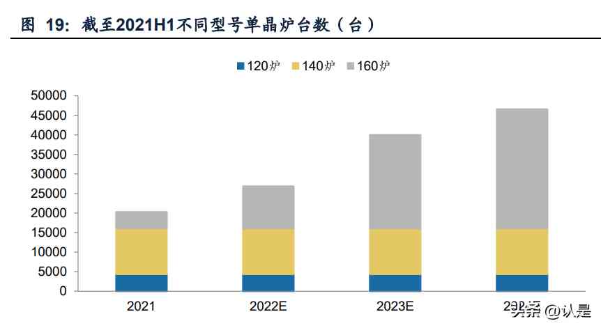 硅片大尺寸化更新迭代,带来部分落后炉型替换需求。目前主流的炉型主要包括120 型、140型、160型,对应的炉室直径分别为1200mm、1400mm和1600mm。160型 为目前的炉型,可兼容42寸以下热场;120型及以下的炉型无法生产210尺寸 大硅片,预计未来将逐渐被淘汰。根据未来新能源的统计,截止到2021年上半年, 120型单晶炉共4349台,占存量单晶炉数量21%。若假设120型炉在23-25年间完成 替换,按照140万元/台的价格估算,对应的总需求空间约61亿元,年均需求规模在 20亿元左右。