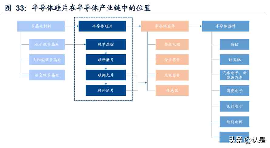 半导体硅片在产业链中位于晶圆上游,按加工程度可分为研磨片、抛光片和外延片。 硅研磨片是指对硅单晶锭进行切割、研磨等加工得到的厚度小于1mm的圆形晶片, 是制作硅抛光片及硅外延片的中间产品,也可以用于制作分立器件芯片。硅抛光片 由硅研磨片经过后续抛光、清洗等精密加工而成,主要应用于集成电路和分立器件 制造。硅外延片是指在硅单晶衬底上外延生长一层或多层硅单晶薄膜的材料,用于 制造半导体分立器件和集成电路。按照掺杂浓度,硅片又可分为重掺和轻掺。