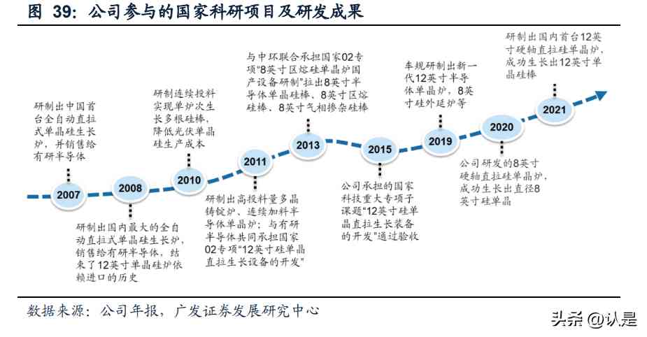公司深耕半导体领域,技术储备丰富,率先开发出多种半导体晶体生长设备。公司 相继开发出具有完全自主知识产权的全自动单晶炉、多晶铸锭炉、区熔硅单晶炉等 晶体生长设备,公司研发的大尺寸、大投料量型单晶炉能够实现大尺寸晶体生长, 满足下一代大规格硅片对单晶生长设备的需求。2021年,公司研制出国内首台12英 寸硬轴直拉硅单晶炉,成功生长出12英寸单晶硅棒;同时在12英寸大硅片设备领域陆续研发了减薄设备、双抛设备、最终抛光设备。