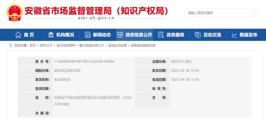 近期,安徽省市场监管局组织抽检13类食品1018批次样品,检出不合格样品15批次,不合格样品涉及:标称安徽忠俊食品有限公司生产的山核桃味瓜子、标称合肥皖东食品厂生产的拉面丸子(烧烤味)、标称安徽中堂酒业有限公司(合肥)生产的中堂知酒味(白酒)、标称宿州市萧县红双喜葡萄酒庄园有限责任公司生产的赤霞珠干红葡萄酒、标称安徽徽农梦食品有限公司(六安)生产的笋干、阜阳市颍泉区圣泉纯净水厂生产的水之韵饮用纯净水等。