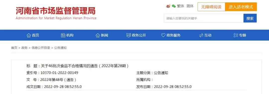 近期,河南省市场监管局组织抽检16大类食品1848批次样品,检出不合格样品46批次,不合格样品涉及:济源市博牛饮品有限公司生产的黄桃果粒乳酸菌饮品、山东悦农食品有限公司生产的山药枸杞葛根薏米粉、开封市禹王台区永旺食品加工厂生产的卤味烤花生、商丘德元食品有限公司生产的老汤花生(南乳味)、河南省枣安食品有限公司生产的即食红枣、郑州市九龙井饮品有限公司生产的竹叶清凉水、山东美洋洋食品有限公司生产的藕粉红枣银耳羹、郑州市嵩山食品有限公司生产的嵩山牌上街酱油(酿造酱油)等。