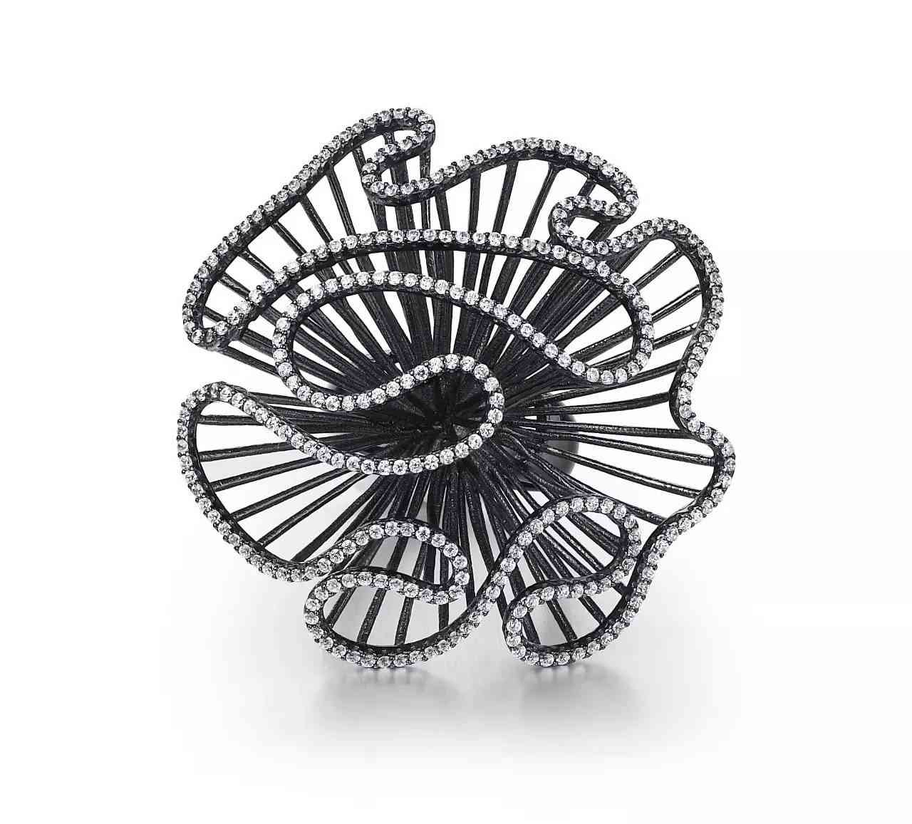 绽放系列戒指 925银电镀黑色镶嵌立方氧化锆RMB 5940