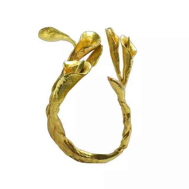 汲取自然为灵感,一花一草可以跃于指上。钟华的珠宝多以18K、24K的黄金为主,造型灵动精巧,浓缩了自然界精华,因为醉心研究中国文化,也会把一些东方文化的美好寓意赋予到我设计的首饰中去,比如马上有系列,用西方的设计方法表达东方的文化寓意。