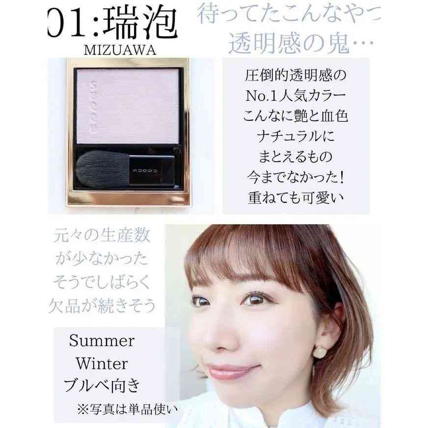 SUQQU这款颊采以腮红和高光两个部门上榜。采用Melting Powder Formulation新技术,使得颊采虽然是粉状,却有着水润感和透明感。