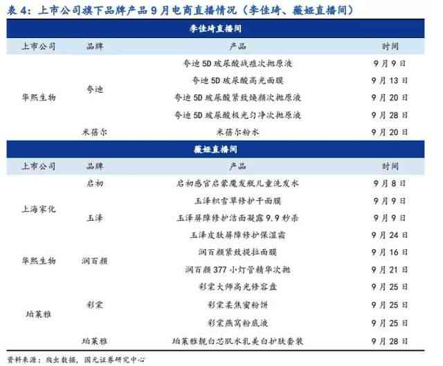 以今年9月为例,华熙生物旗下化妆品品牌夸迪和米蓓尔先后5次出现在网红李佳琪的直播间里,润百颜则2次出现在薇娅直播间。另珀莱雅和上海家化也携自家子品牌试水与薇娅合作,目前来看效果显著。