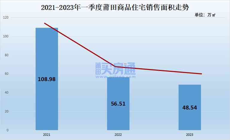 其次,虽然今年一季度莆田住宅备案量逐月上涨,但却不是最亮眼的,我们把时间线拉长来看,根据官方数据,1-3月份,全市商品房网签面积48.54万㎡,与去年同期相比下降14.10%,降幅较2022年(-42.0%)收窄27.9个百分点。