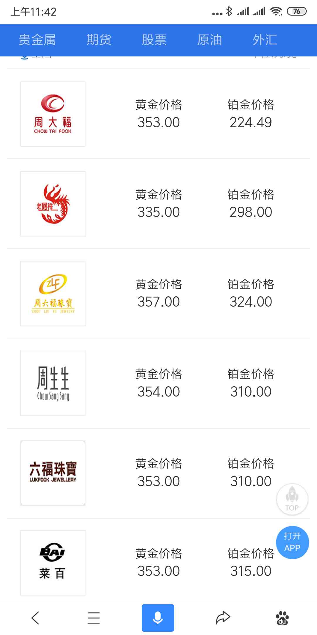 今日黄金饰品价格