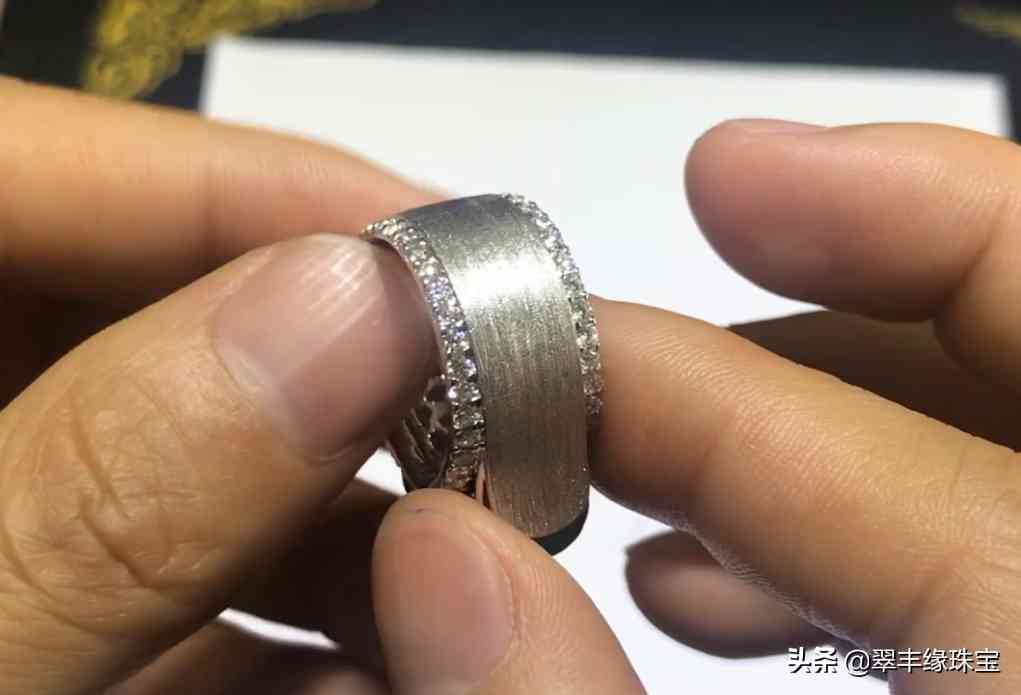 整个戒指臂呢则是拉丝的效果,没有镶嵌一颗钻石,但是两边的钻石是一直围绕整圈的[左上]