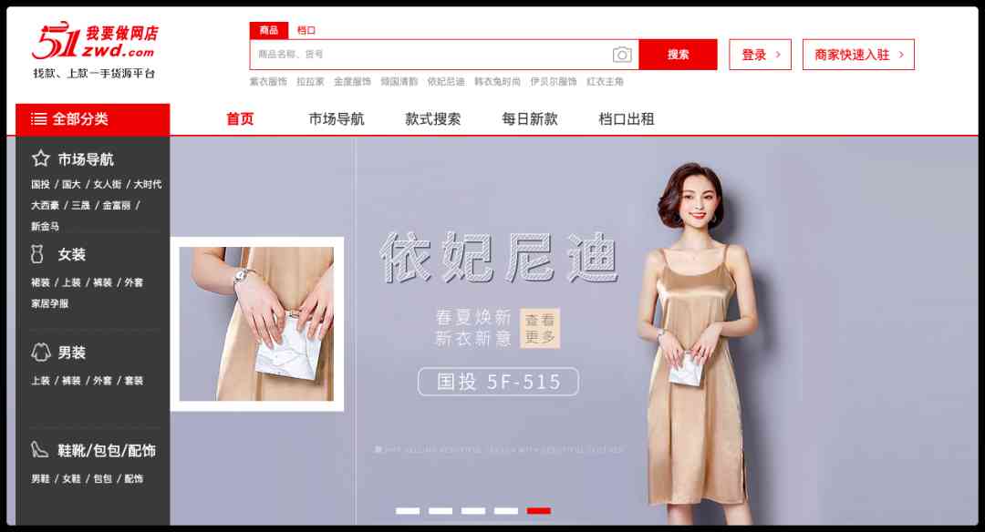 作为一个外行人看到这个网站,最大的感受就是服装品类多,男装,女装,孕妇装,支持商品和档口以及以图搜同款的功能。