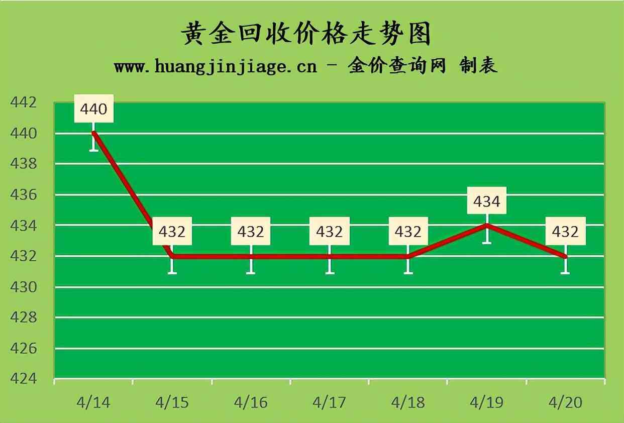 黄金回收价格432元/克,铂金回收价格210元/克,钯金回收价格325元/克,18K金回收价格309元/克,银条回收价格4.3元/克。(黄金行情是波动的,回收金价没有固定标准。)