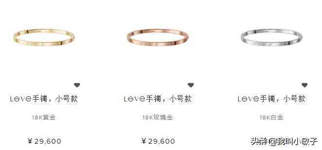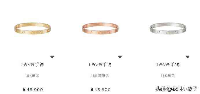卡地亚的戒指很好看,身边一些朋友结婚选的对戒就是他们家的,今天要说的是他们家的手镯,哇哦,款式和颜色都属于经典,热款爆款,此款手镯有宽版窄版以及每个版本都有3个颜色(18K黄金 18K玫瑰金 白金)可以选,选玫瑰金的较多,玫瑰金更耐看些,也要看个人喜好和经济情况啦,价格从3W到5W左右,还有一个加钻石版本,钻石的多少也决定了价格的高低,铺镶钻石要296,000元哦。
