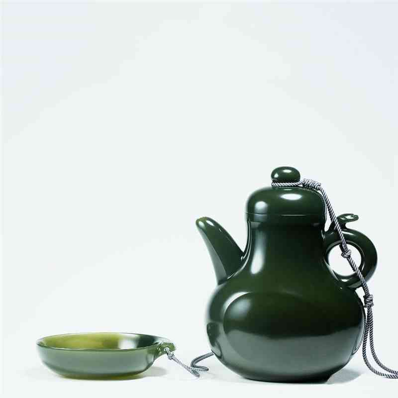 由于青玉的阳起石含量比较高,可以说它是和田玉中硬度最高的。其原石块度大,结构致密交织,柔韧性非常好,被用来制作薄胎器皿是再合适不过了,青玉在打薄之后,稍有灯光,就能把青玉的美表现得淋漓尽致,看起来极为漂亮。