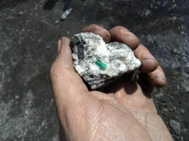 木佐矿区刚刚开采出的祖母绿矿石母岩