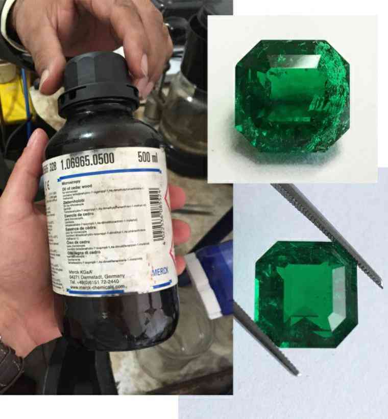 祖母绿无色油瓶及祖母绿(中-重度注油)前后对比