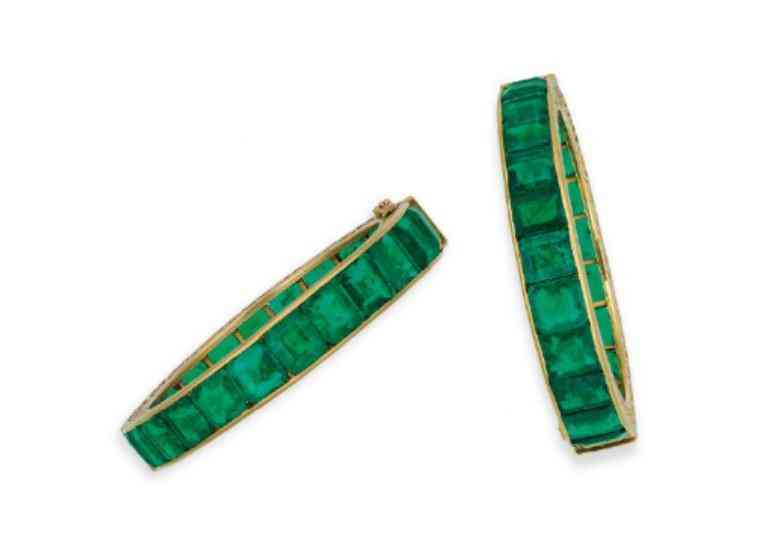 哥倫比亞祖母綠手鐲一對,附SSEF證書,鑲金,約1900年製,手鐲內周長16.2厘米