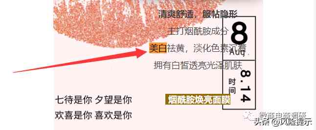 在名妍呈美旗下众多化妆品产品当中,名妍呈美烟酰胺焕亮面膜也同样涉嫌存在虚假宣传的问题,在官方公众号的宣传下,该产品自称具有美白祛黄的功效。