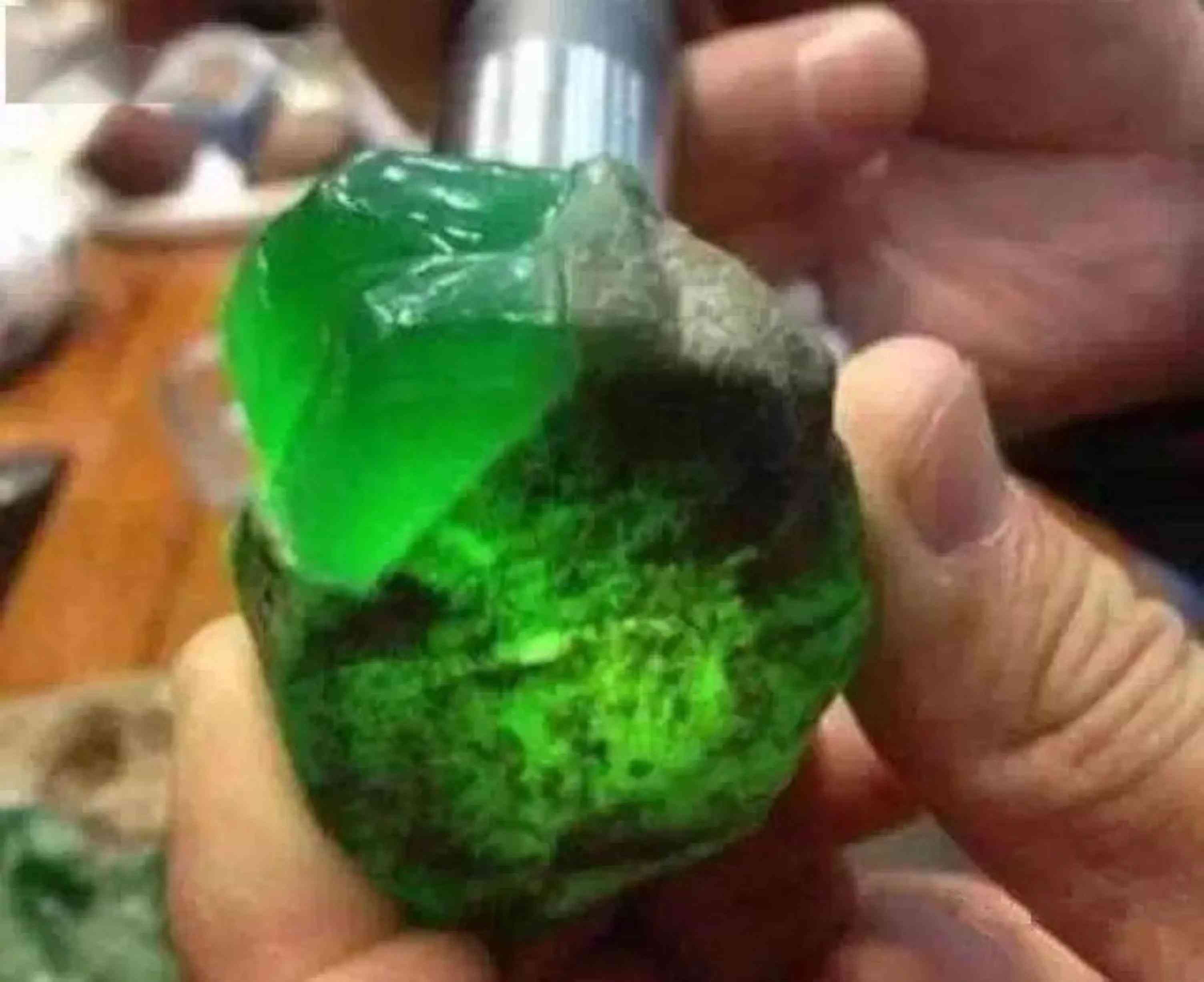 接下来,第二刀从石头中间切下,没想到,这一刀更是惊呆众人!映入大家眼帘的,不仅有高翠阳绿,还有一圈20公分宽的绿色色带,没有丝毫杂质,妥妥的玻璃种料子!一称重,足足有180公斤,就这些在当时就被估价10亿了!