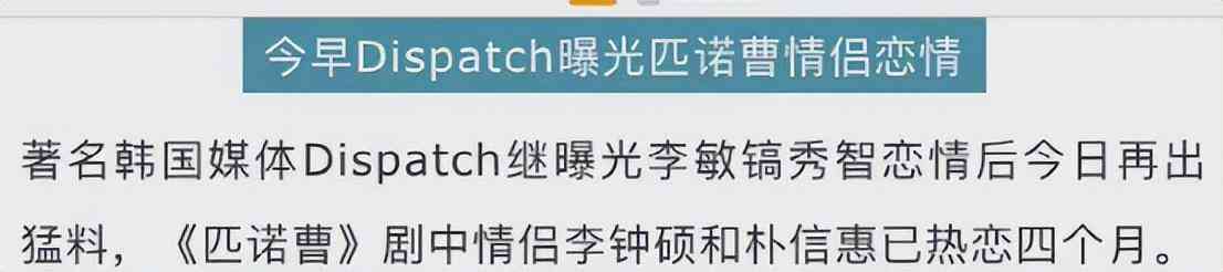 李钟硕在权娜拉之前,和朴信惠曾多次传出恋情,D社次曝出二人恋情,李钟硕立马否认,只强调他和朴信惠是朋友,D社气不过再放出第二波,还写了小作文,细扒李钟硕和朴信惠是怎样利用工作行程偷偷约会,最后还不忘阴阳怪气一句:祝你们友谊地久天长。后来朴信惠嫁做人妇,现在还当了妈妈,婚礼李钟硕没参加,更没公开送祝福,两个人已经成了平行线。