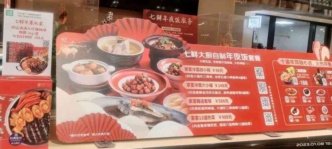 店长戴先生告诉小虹:“目前,我们的热食销量越来越好了,业绩占比30%左右,现在还推出了即食年菜,比如柠檬烤鸡、蔓越莓猪肋排、八宝酱鸭、佛跳墙等,满足消费者过年聚餐的需求。”