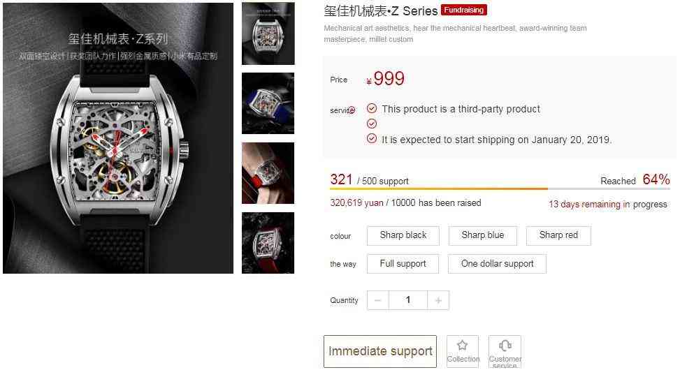 近日,中国制造商小米发布了一款用于众筹的新型机械手表。众筹款小米CIGA机械表售价999元(145美元),这是小米货架上的第三代CIGA机械表。小米CIGA机械表是第三方产品。由深圳昊嘉创新有限公司提供,该公司同时负责售后服务。预计将于2019年1月20日开始出货。
