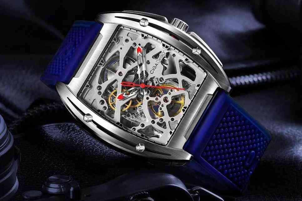小米CIGA机械表以其中空的设计而闻名,你可以透过它的内部结构看到它。Z系列采用方形和圆形相结合的设计,使其表盘不完全是方形或圆形(双面曲线设计)。它是由一个坚固的316L钢外壳锻造而成,赋予了它机械艺术的深层美。双面中空设计,齿轮操作无缝。