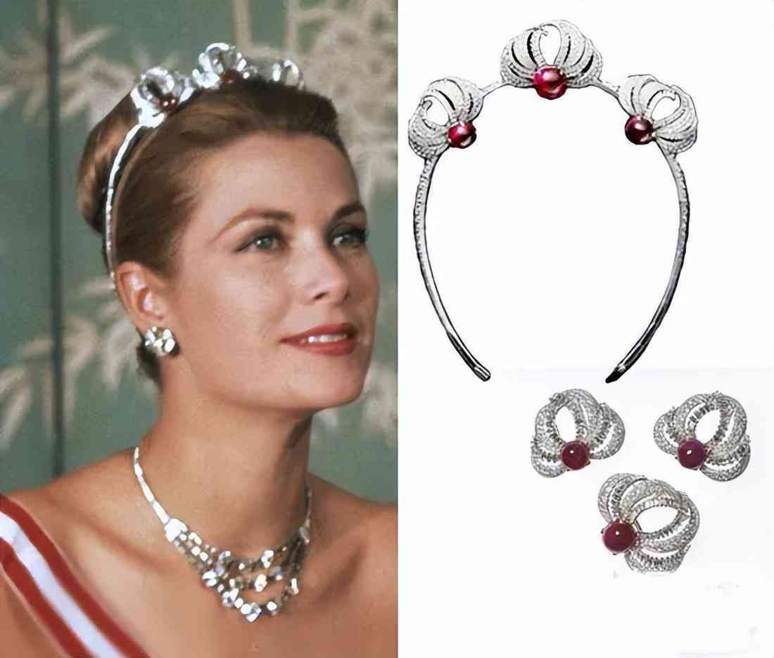 这顶冠冕是格蕾丝·凯利当年嫁入摩纳哥王室的结婚礼物,由卡地亚设计制作,这顶冠冕可以转换为一条项链或几枚胸针佩戴。格蕾丝王妃有时会将这些胸针别在衣服上,有时则会单独配戴在发髻中。但格蕾丝去世后,这顶冠冕从来没有被其他人佩戴过,虽然仍属于摩纳哥王室,但它经常被借出展览。