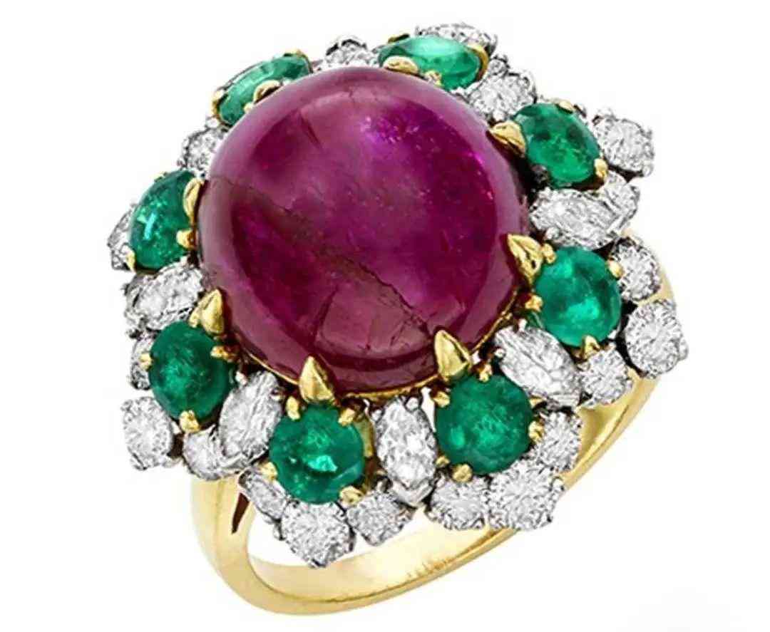 宝格丽古董戒指,1965年 红宝石、祖母绿、钻石