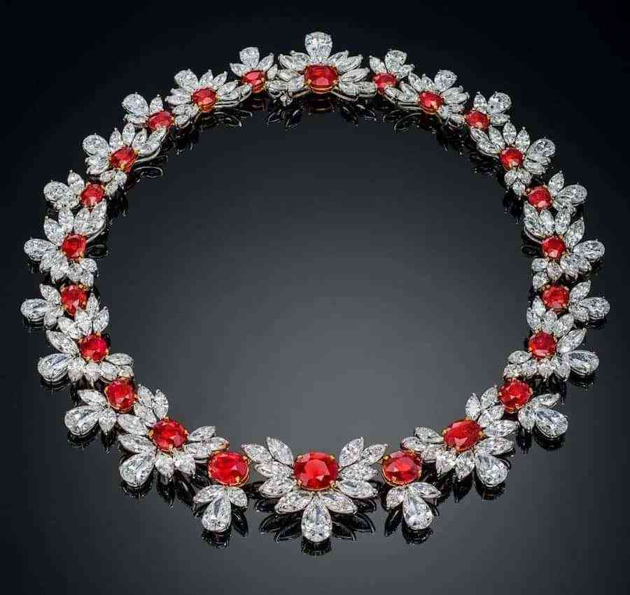 Faidee Red Emperor 红宝石和钻石项链拥有 60 颗重达 104.51 克拉的红宝石,这是家族掌控的珠宝品牌 Faidee 四代人的积累才“攒”出一条品相完美的项链,它在 2014 年 4 月的苏富比香港拍卖会上以近 1000 万美元的价格售出。