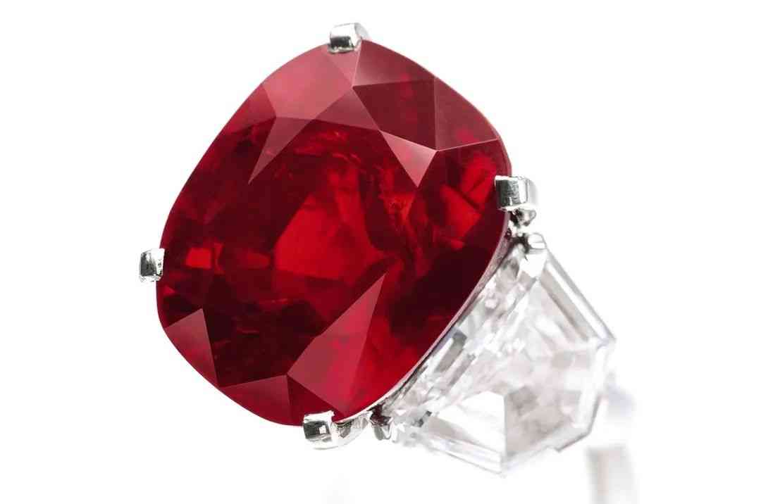 这枚重达 15.04 克拉的缅甸红宝石是目前红宝石每克拉单价的世界纪录保持者,它在 2015 年 12 月佳士得拍卖中以 1830 万美元拍出,即每克拉 122 万美元的平均单价打破了当年由日出红宝石打造的纪录。