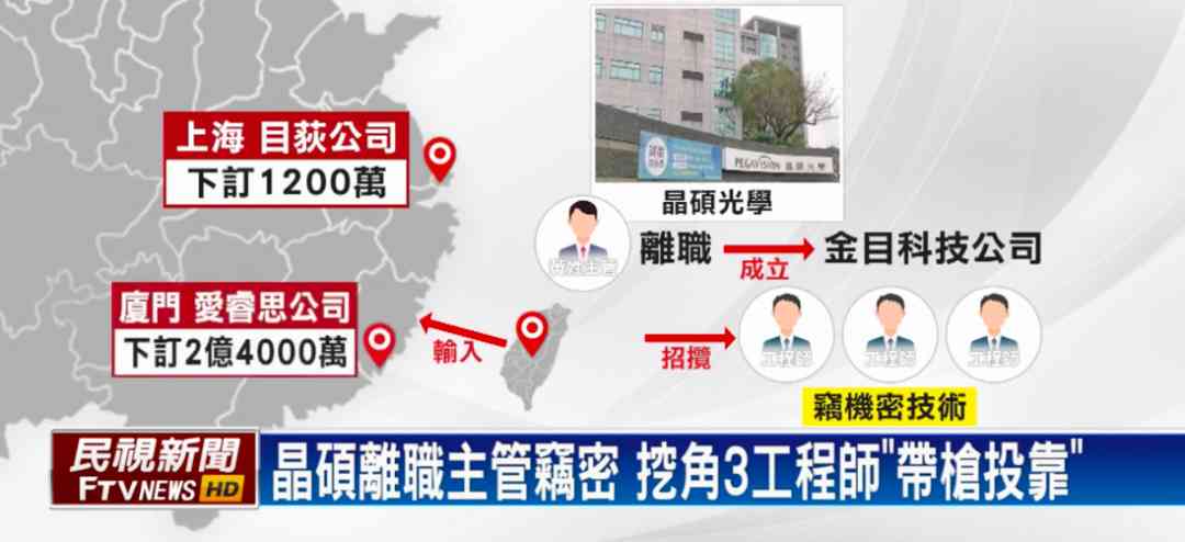 据报道,一家名为晶硕光学的制造企业,遭大陆客户高薪挖角前高管。后者涉嫌窃取公司核心的产品模具与自动化技术,离职时还顺便挖走三名工程师。