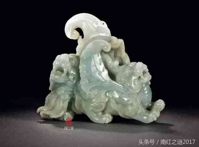 此雕件用整块翡翠雕琢而成,整体采用圆雕,局部加以透雕阴刻,技艺精湛,做工精美。其内容为一雄一雌两只貔貅。雄性体型较大,头上独角,凸目长牙。身上鬃须上卷,双翅高举。爪子强壮有力,一条后腿后伸。