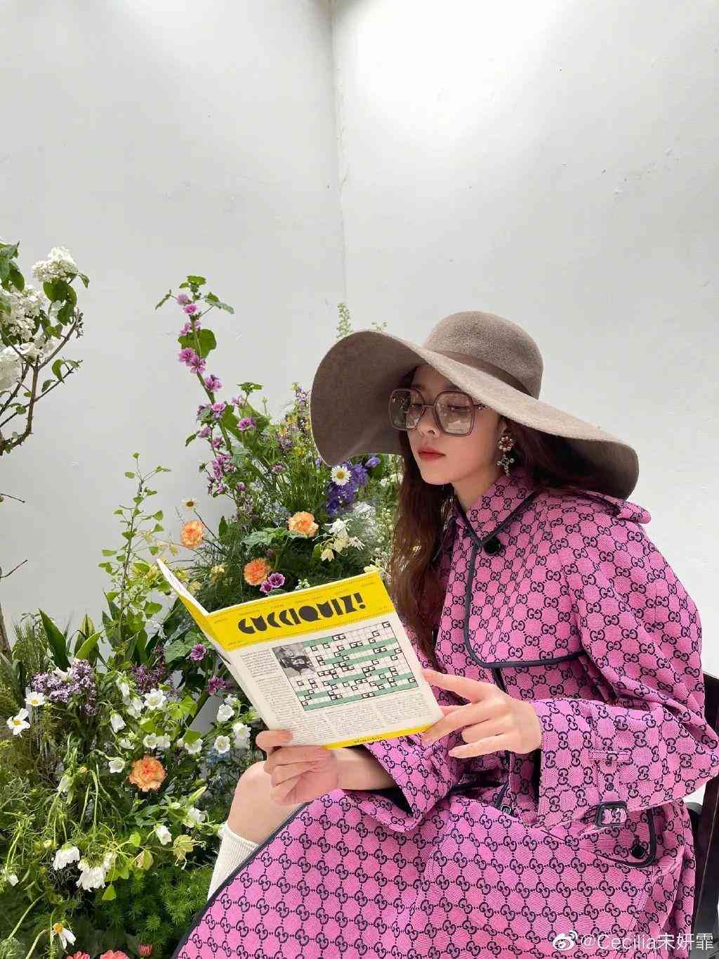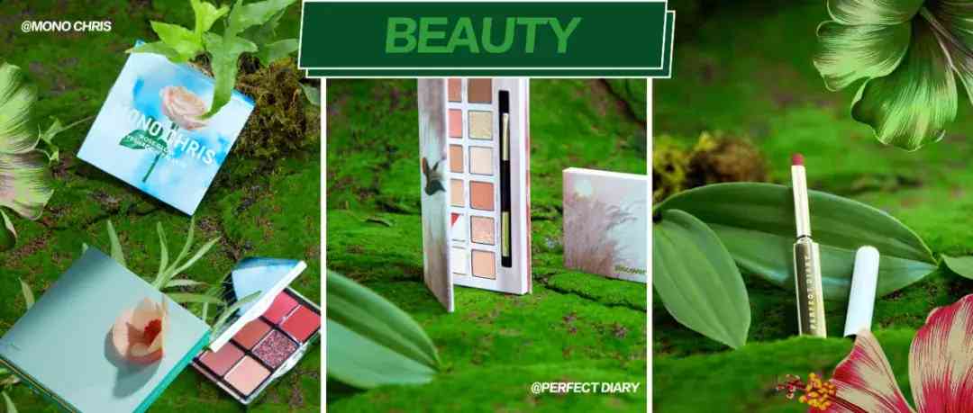 贴近自然的绿色背景跟配色小清新的彩妆相融合,绝对是春日里最美的一道风景。