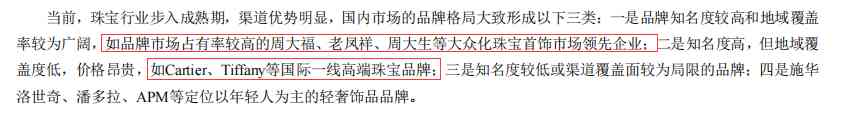 行业竞争较激烈,行业内有老凤祥、周大福、周生生等,华南地区基本是几大香港品牌瓜分了,所以周大生虽然是深圳的企业但是大本营在二、三线。感觉这个名字起得就是想跟人家周大生、周生生碰点关系。