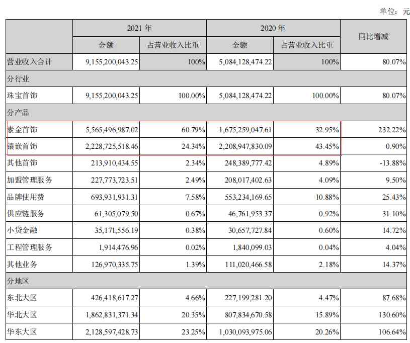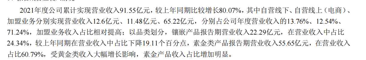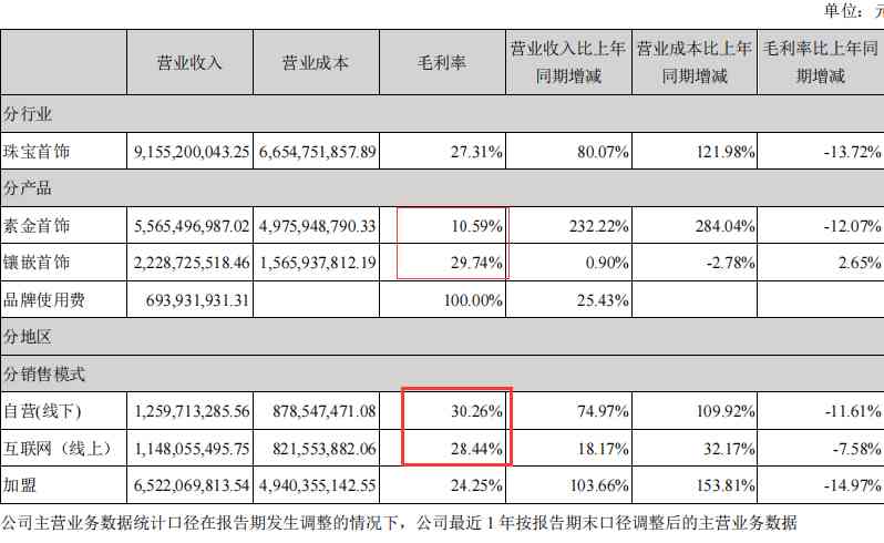 素金的毛利只有10%,镶嵌也就30%不到,线下的毛利居然比线上的还高。