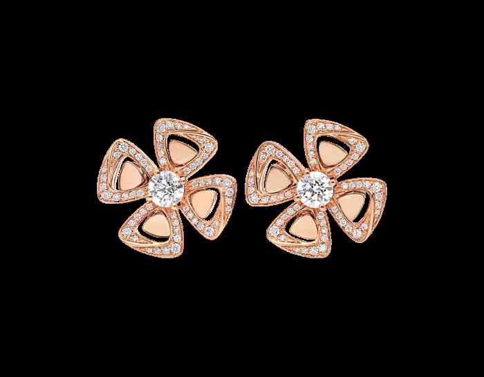宝格丽FIOREVER咏绽系列耳环,18K金打造的四枚密镶钻石镂空花瓣,围绕着一颗闪耀的中央钻石。虽然相比宝格丽的其它爆款,这款的出镜率没那么高,但仍旧让人无法忽视它的美丽。耳环的造型从罗马人所珍视的迷人四瓣花中汲取设计灵感,这种花是幸福与快乐的象征。
