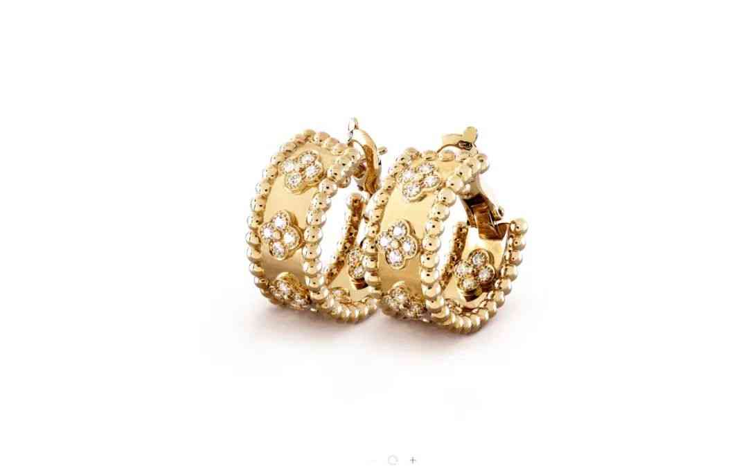 这个系列的耳环,非常复古优雅,很适合喜欢复古风格的时髦精们。18K金环上不仅雕刻着四叶草,两侧还点缀了紧密排列的露珠边,有低调的华丽感。