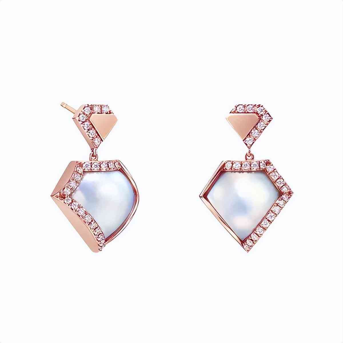 FACETED 系列耳环,马贝珍珠丰富的霓虹光泽,与18K金闪耀的色泽交相呼应,浪漫而独具个性。