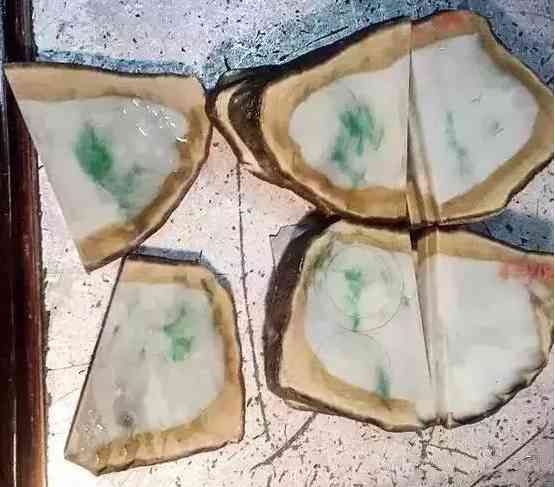 翡翠是大自然的产物,其颜色非常丰富,可分七色:黄、白、绿、红、紫、黑、蓝,并且可以同时在一块翡翠上出现。行话说:有翡无翠,有翠无翡。如果同时出现“翡”、“翠”两色,已属相当难得,如果再加上紫或白色,则非常罕见。下面这块切开的料子,相信大家看见了都会两眼放光,但是我们没想到的是这块料子是以8000块成交的。