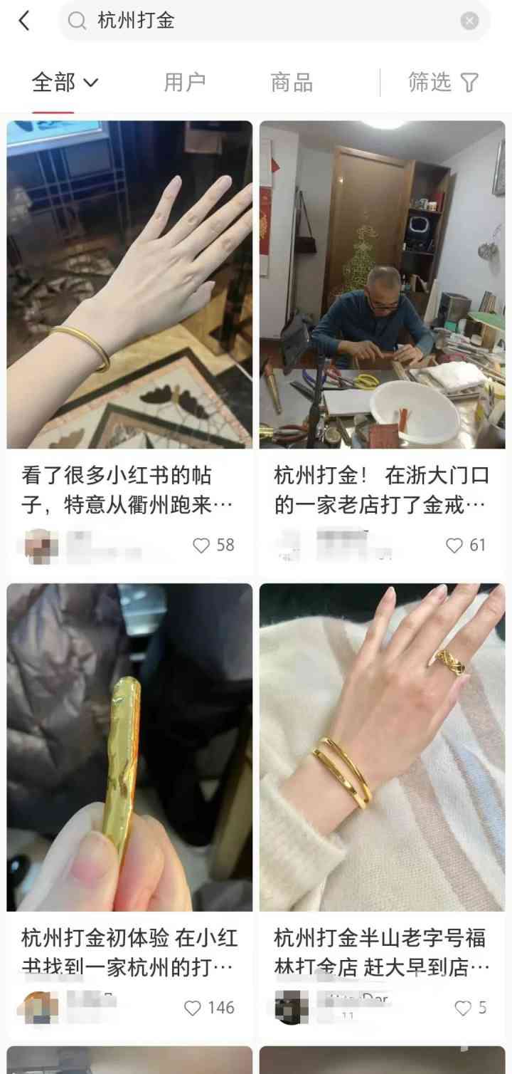 而比起去黄金品牌店里购买精美的黄金首饰,部分年轻的 “淘金”一族更希望寻找一种高性价比的方式,比如去打金店里打手镯。