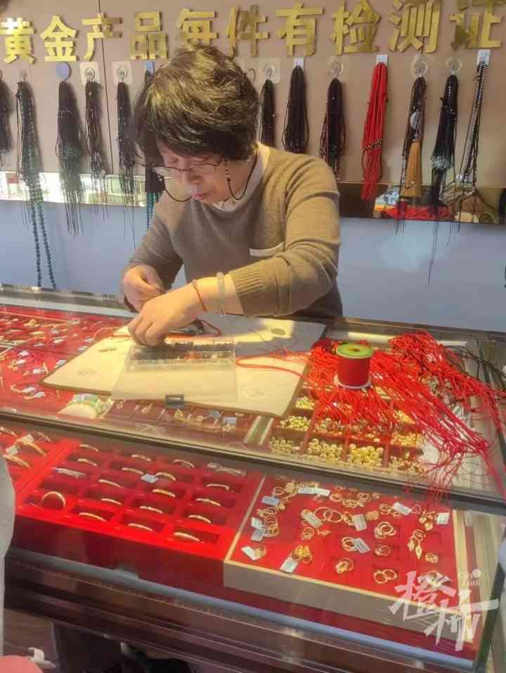 阿姨(方姐)是店里的“设计大师”,店里很多款式都是她自己设计的,彩金、钻戒改款,而且她的手非常巧,来店里买吊坠的小姑娘都指定要方姐来编绳结。