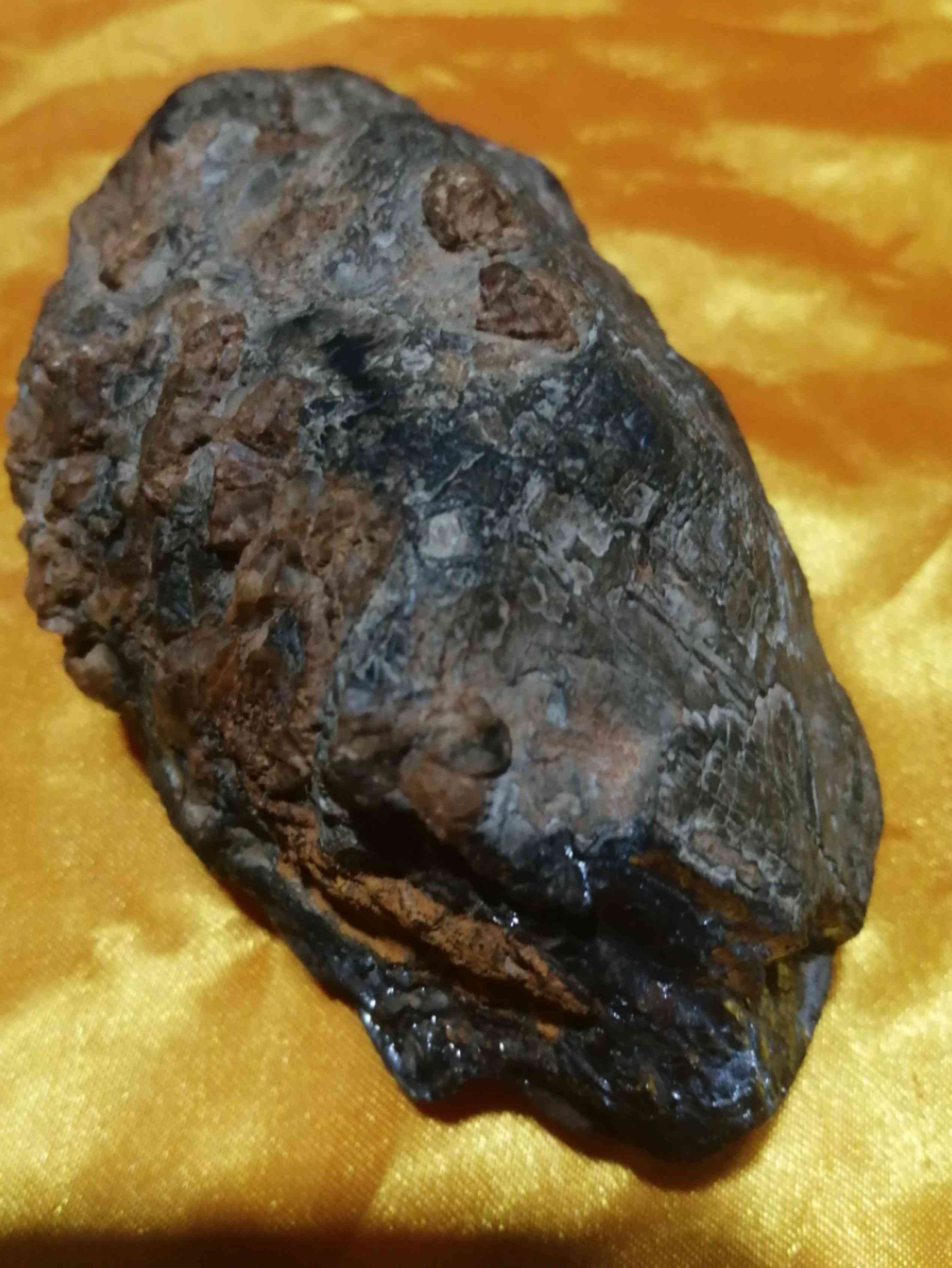 宝贝,是20l0年7月中旬去内蒙古呼和浩特大草原一个蒙古包里行友手里收的,行友是朋友介绍的,他特别喜欢玩各种陨石,收存了很多大小丶形状各异的陨石,一时把我看的眼花缭乱,行友耐心给我介绍了近十种陨石,我最感兴趣的还是这块玻璃陨石,太阳光下闪闪发亮,价格很硬。饭桌上三句话不离本行,一直在讨价还价,他叫的手抓羊肉和凉菜,我根本没有吃到味道的美味,只是谈论这块陨石的价位,终于搞定后,他满意,我高兴。这时候,他为我敬马奶喝,然后,我才慢慢地品尝着丰盛的午餐,手抓羊肉,肉嫩、味地道,凉菜别有风味。